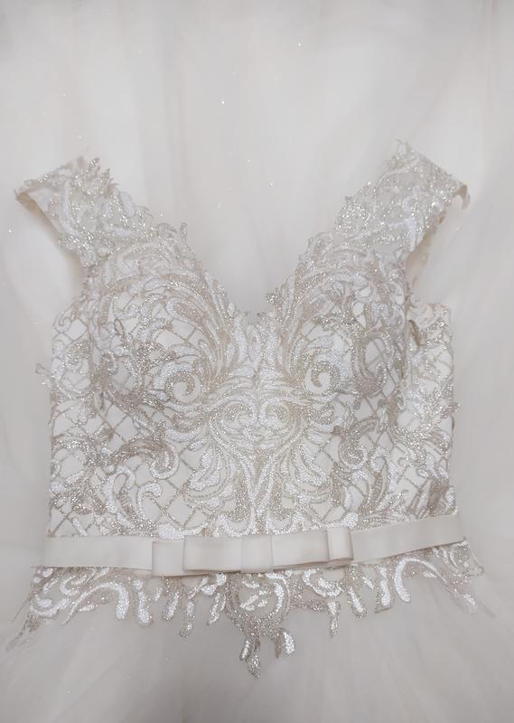 В идеальном состоянии Цвет: Айвори Подъюбник на 7 колец - в подарок (на фото платье без колец) Цена - договорная За более детальной информацией убедитесь в личные