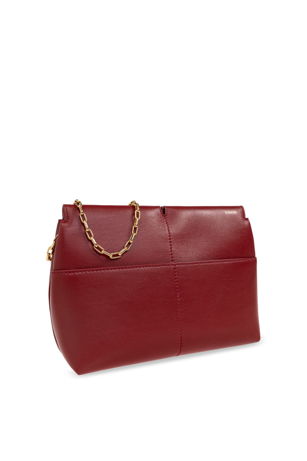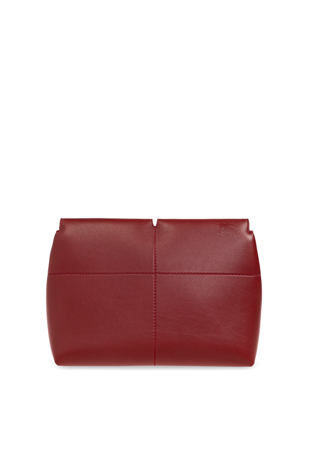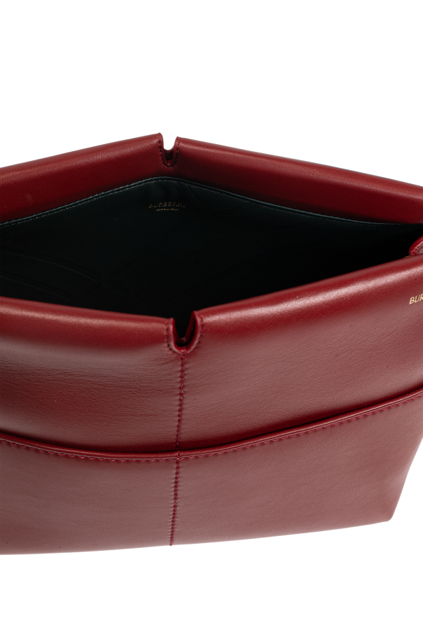 Introducing the exquisite Snip Clutch by Burberry, a paragon of elegance and sophistication. This deep red masterpiece showcases a rectangular form with subtly rounded corners, crafted from the finest calfskin leather. The clutch features a smooth, unembellished surface, exuding timeless charm and class. Adorned with a golden chain, this accessory can function both as a decorative element and a fastening mechanism, complemented by Burberry\'s discreet logo in the upper right corner. The meticulous stitching along its edges accentuates its luxurious nature, while the magnetic clasp ensures secure closure. Inside, the lambskin leather lining in deep green offers a single compartment, ample for your essentials. This clutch is a quintessential piece for those who appreciate exclusivity and style, effortlessly complementing any high-end ensemble. Why Choose This Product? Exquisite Material: Premium calfskin and lambskin leather ensure durability and luxury. Versatile Design: Golden chain provides dual functionality as a strap or decorative accent. Iconic Brand: Burberry\'s legacy of excellence and innovation since 1856. Secure Closure: Magnetic snap keeps your belongings safe and accessible.
