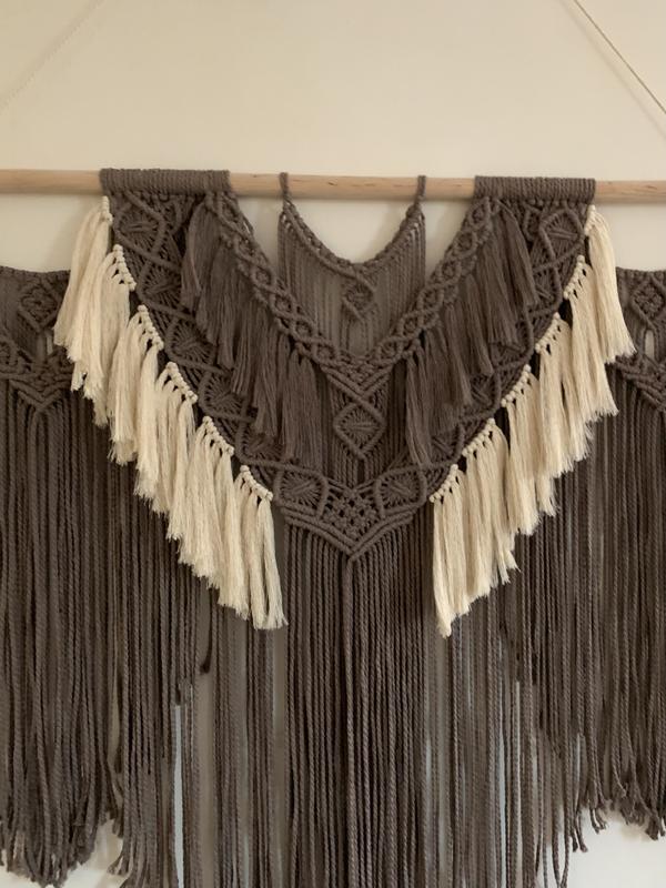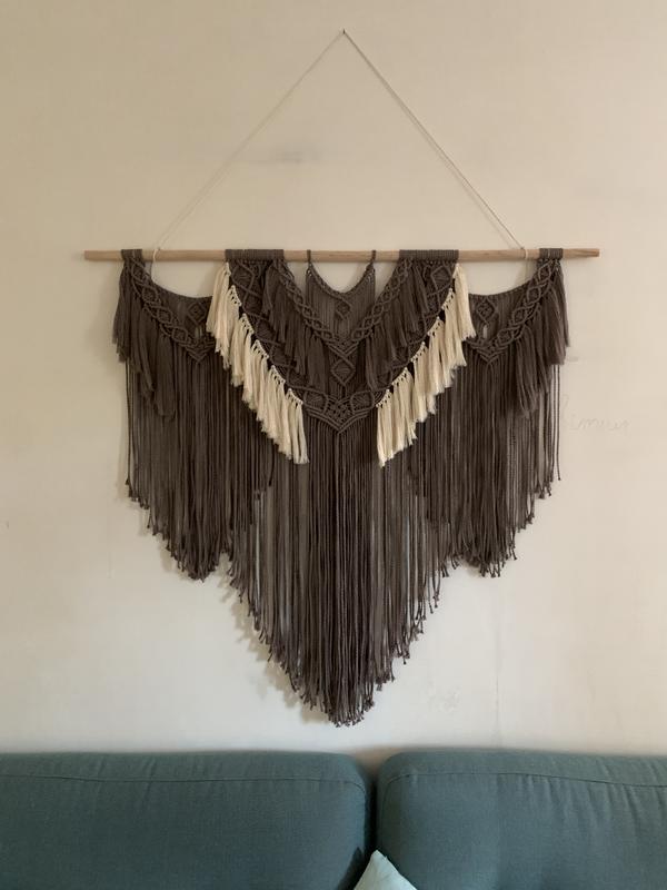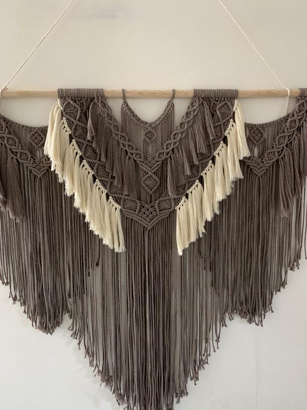 Велике настінне панно макраме, основа - 120см, панно 95*100 см, кольори - какао та натуральний. Колір може бути за вашим бажанням.