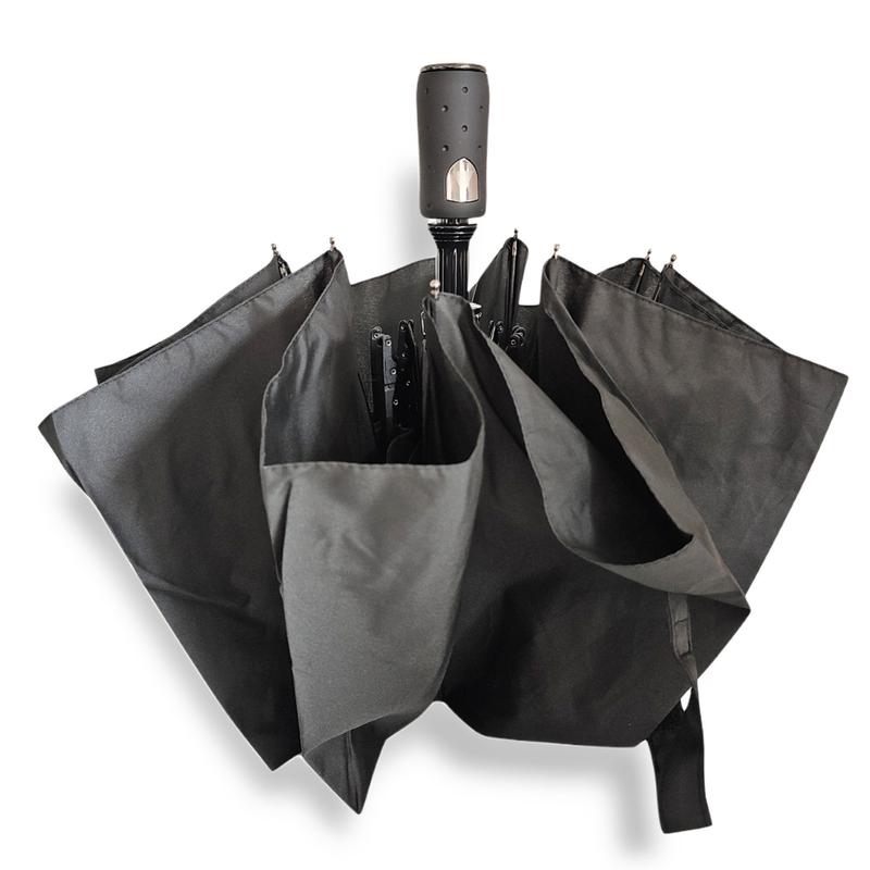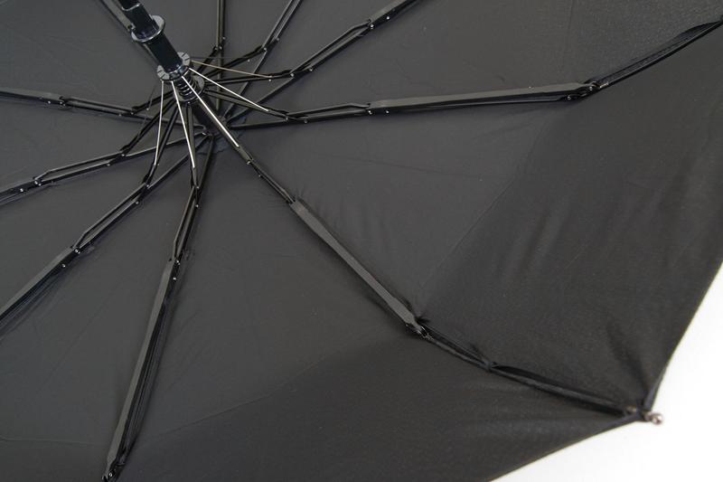 Черный зонт полуавтомат "Три Слона"с прямой ручкой Полуавтоматический черный складной зонт в три сложения с прямой ручкой от торговой марки "Три Слона". Стильный мужской зонт-полуавтомат защитит вас от дождя, а при сильных порывах ветра не сломается благодаря системе антиветер из 9 карбоновых спиц. Зонтик имеет прямую черную прорезиненую ручку с кольцом для подвешивания.