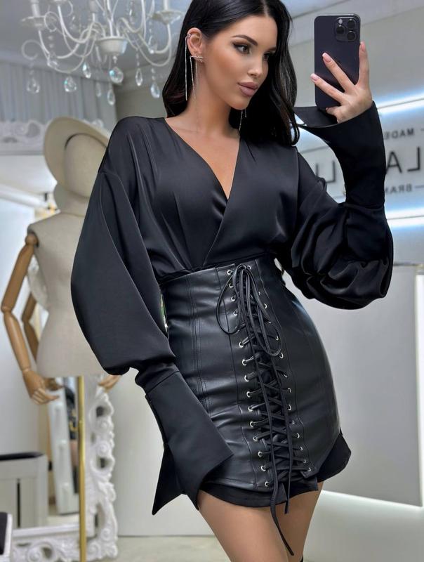 Платье -рубашка на запах Материал - плотный итальянский шелк-сатин lux качество На запах ,талия на резинке Размер единый 42-44 Весть цвета (Под заказ можно 40 46 48 50 52 размеры , , +200) Кожаная юбка так де в продаже