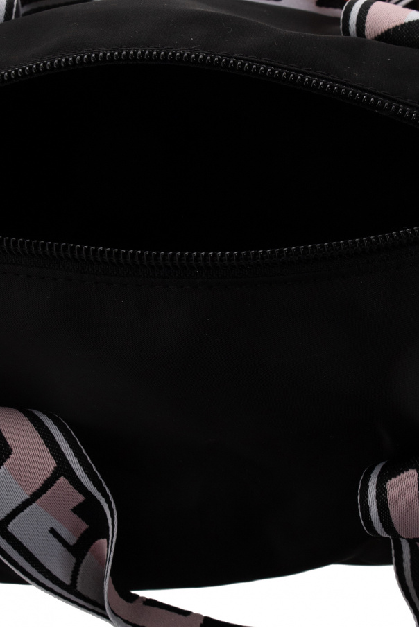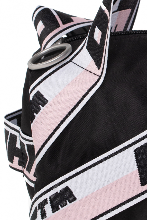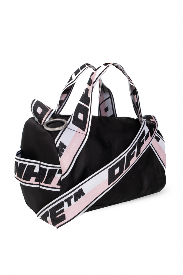 Black, white and pink shoulder bag from Off-White Kids. Enriched by the brand\'s logo, this design features a zip fastening, three half-round handles (one is on the side), a long strap and one internal compartment.