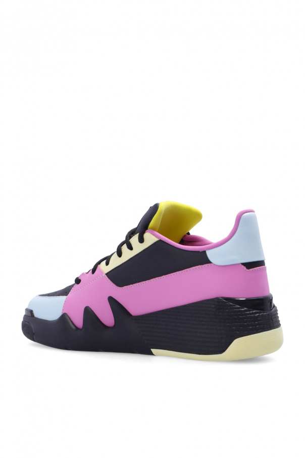 Multicolored ‘Talon’ sneakers from Giuseppe Zanotti. Made of leather, this lace-up pair features a logo appliqué, logo patch and rubber sole in black and light yellow.