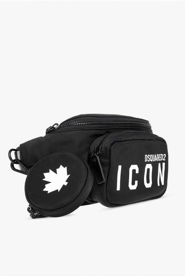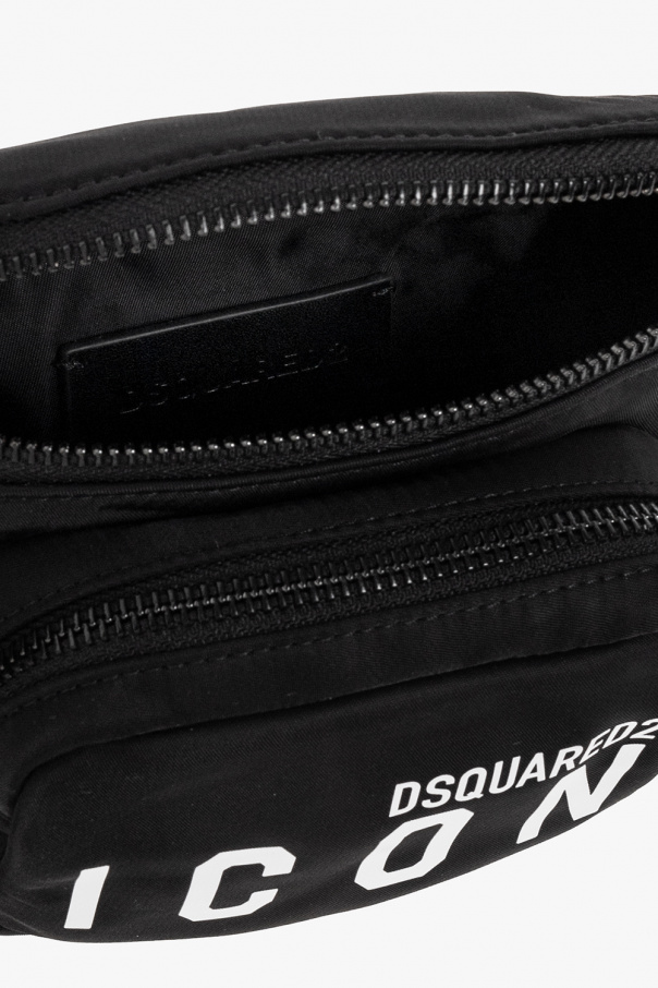Black belt bag Dsquared2. Printed with a white logo, this design features a zip fastening, a zip pocket on the front, an adjustable strap and an attached zip pouch.