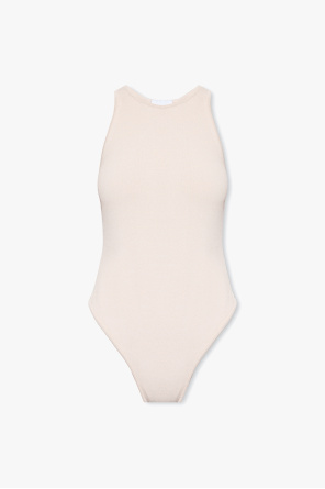 Black bodysuit from Stella McCartney. Made of cotton, this style features a round neck, snap fastenings at the bottom and long sleeves with white and black branded elastic trims to the cuffs.