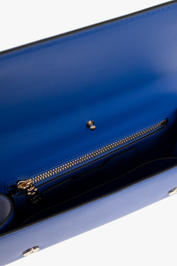 Blue ‘3.5’ shoulder bag from Dolce & Gabbana. Made of calf leather, this model is complete with a magnetic snap closure, metal DG appliqué in gold-tone, detachable and adjustable shoulder strap, gold-tone metal hardware and one internal compartment with a slip pocket, zip pocket and card slot.