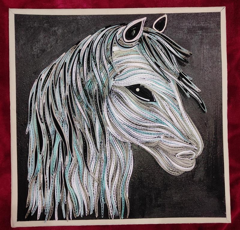 🎨Картина "Белый конь Шептало" 🐴Изготовлена в технике петельчатый квилинг 📏Размер: 30 см x 30 см 🖼️Основа: ДВП Эту картину я создала, вдохновившись образом лошади Шептала из произведения Владимира Дрозда "Белый конь Шептало". Мне понравился именно этот образ, потому что Шептало не так, как другие, не покоряется общим нормам, не идет, как говорится, "за стадом", а имеет собственные взгляды на жизнь, свои убеждения, что делает его индивидуальным и свободным.