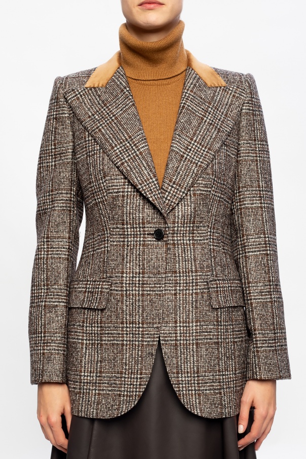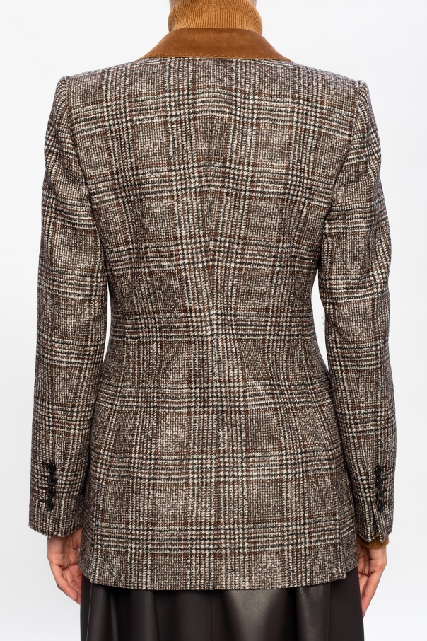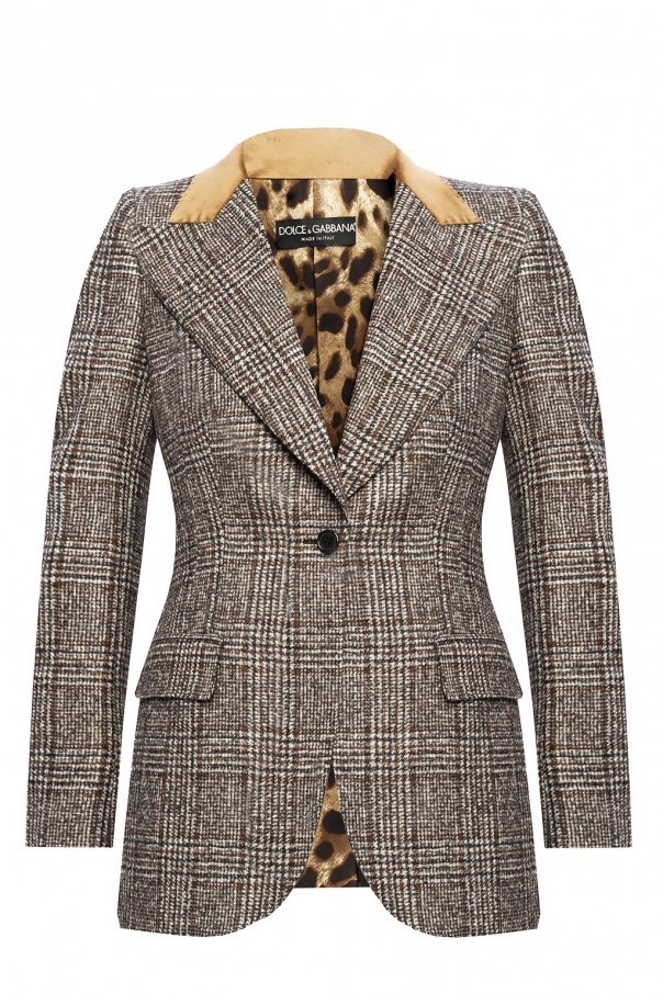 Grey, brown and black blazer from Dolce & Gabbana. Fastened with buttons, this long sleeve design features a check pattern, two front flap pockets and a single rear vent.