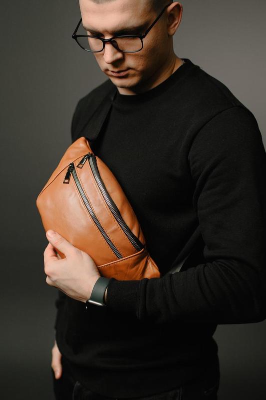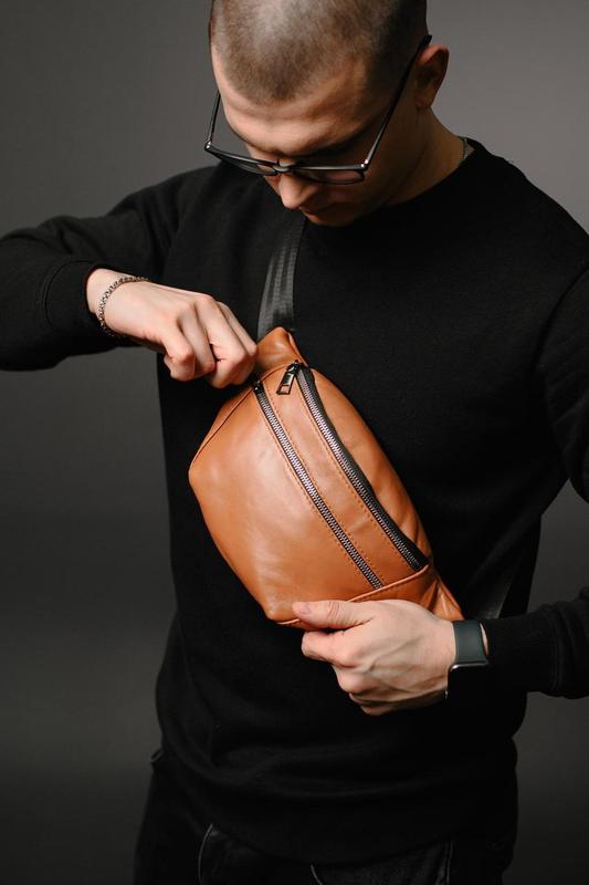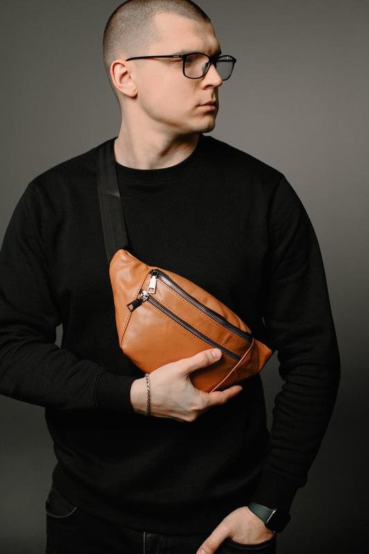 Чоловіча сумка-бананка з натуральної гладкої шкіри - це вражаючий аксесуар, який поєднує в собі стиль та практичність. Виготовлена з високоякісної натуральної шкіри, ця бананка надає вашому образу розкоші та елегантності. Оригінальний дизайн сумкина пояс робить її видовищною та неповторною. Вона створена для тих, хто бажає виділятися з натовпу та виражати свій індивідуальний стиль. І незвичайний колір сумки надає їй особливого шарму та привабливості. СТРУКТУРА: • одне основне відділення на молнії • зовнішня кишеня на молнії з лицьової сторони • зовнішня кишеня на молнії з тильної сторони ХАРАКТЕРИСТИКИ: - Матеріал: натуральна овеча шкіра - Вид шкіри: гладка - Тип моделі: бананка - Фурнітура: пластикова - Фастекс: пластиковий - Максимальна довжина ремінця: 100см - Розмір: (В*Ш*Г) - 16см*36см*8см