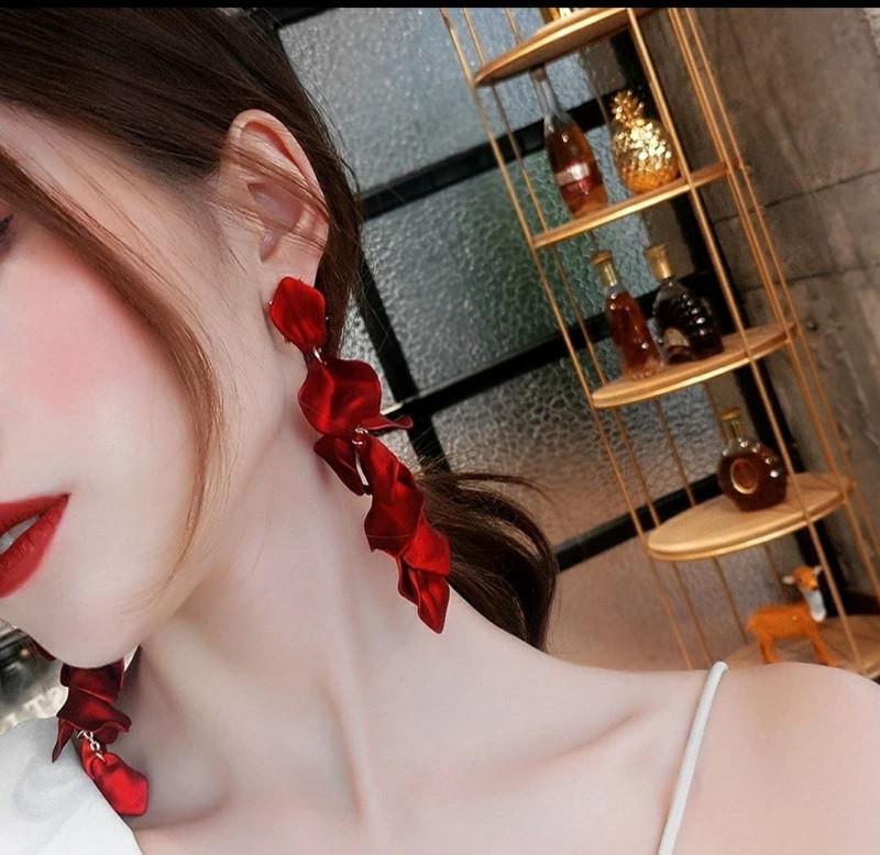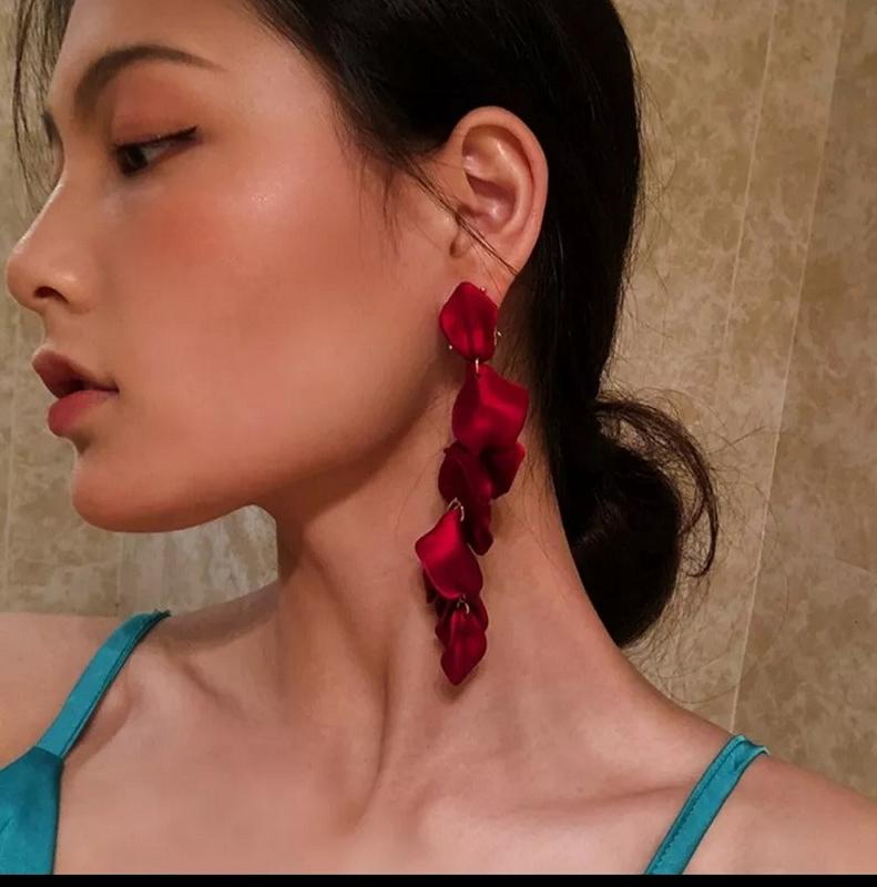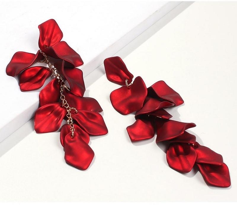 Сережки біжутерія Ефектне звисаюче гроно червоних пелюсток Полегшений матеріал Насичений глибокий червоний колір Застібка "пусет" довжина сережки 12 см