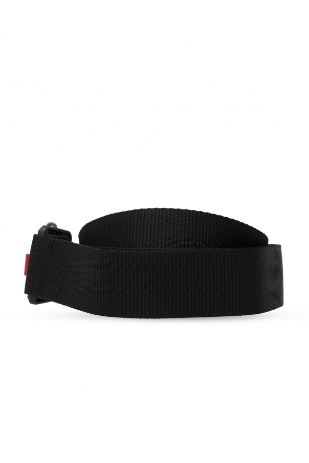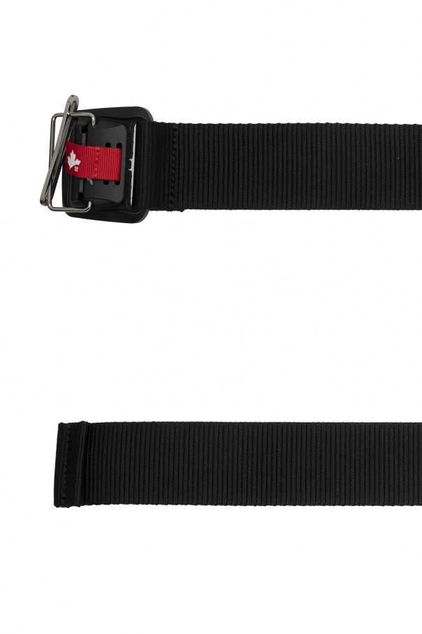 Black belt from Dsquared2. Offering an adjustable length, this item showcases a red patch, a logo print and a black and silver-tone buckle.