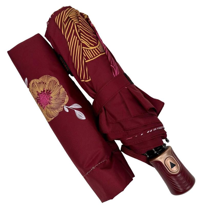 Вес зонта - 465 грамм Диаметр купола - 96 см Длина в сложенном виде - 32 см Длина спицы - 56 см Количество сложений - 3 Количество спиц купола - 9 Материал купола - Полиэстер Материал спиц - Пластик|Сталь покрытая краской Механизм - Полуавтомат Тип зонта - Складной