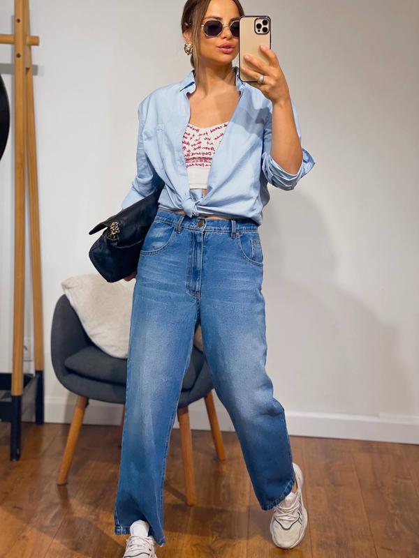 Наша бомба ракета Наш ЭКСКЛЮЗИВ❤️🔥 Джинсы 100% Bestseller Модель: ровная, высокая талия, широкие от бедра Размер: 42, 44, 46, 48 (рус обозначение размеров 24,26,28,30 (США обозначение размеров Фурнитура YKK Качественный немецкий джинс Пошив качественный, все шьется на американской оборудовании Цвета: светло-серый, голубой, синий, темно-серый