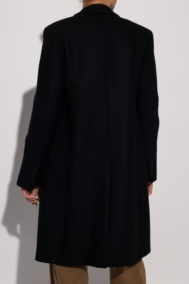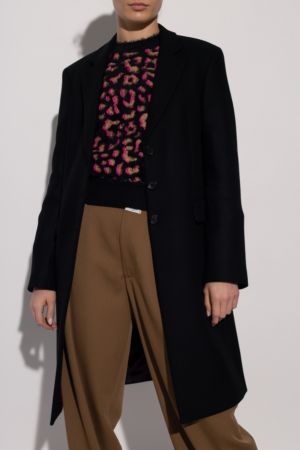 Black coat from PS Paul Smith. Crafted from a wool and cashmere blend, this style features button fastenings, notch lapels, two flapped pockets, long sleeves and a single back vent.