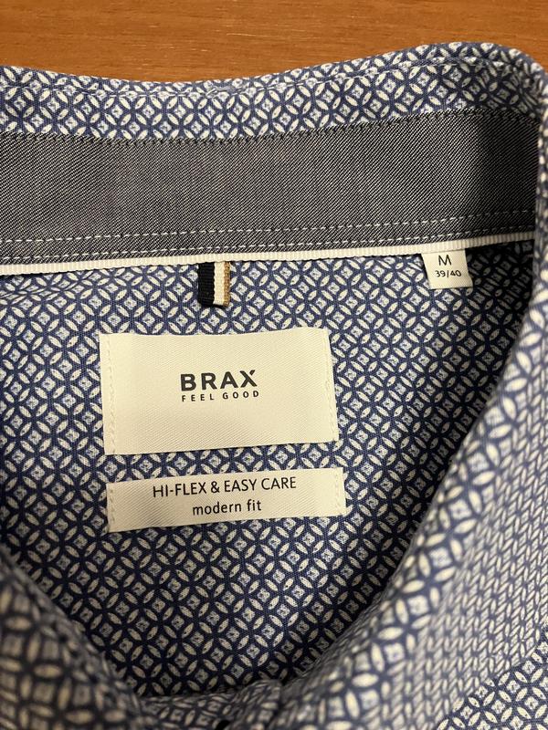 Мужская брендовая рубашка Brax оригинал (Германия), размер указан М (замеры ниже в описании), материал 97% cotton 3% elastane (хлопок премиум, легкий, эластичный, тянется), состояние новой вещи, качество. ---ЗАМЕРЫ: плечи-47, грудь-56, длина-74, длина рукава-66.5