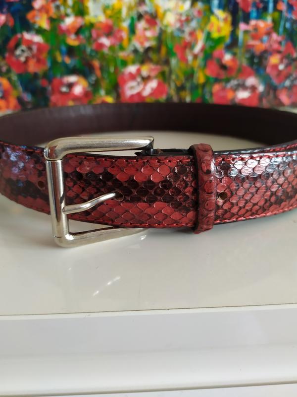 стильный ремень с изменением кожи, оттенки от темно-красного до черного, в идеальном состоянии, изготовленный в Италии (artigianale), очень стильно сочетается, размер S-M, длина 100 см. ширина 3.2 см, пряжка: ширина 4.5, длина 4.5