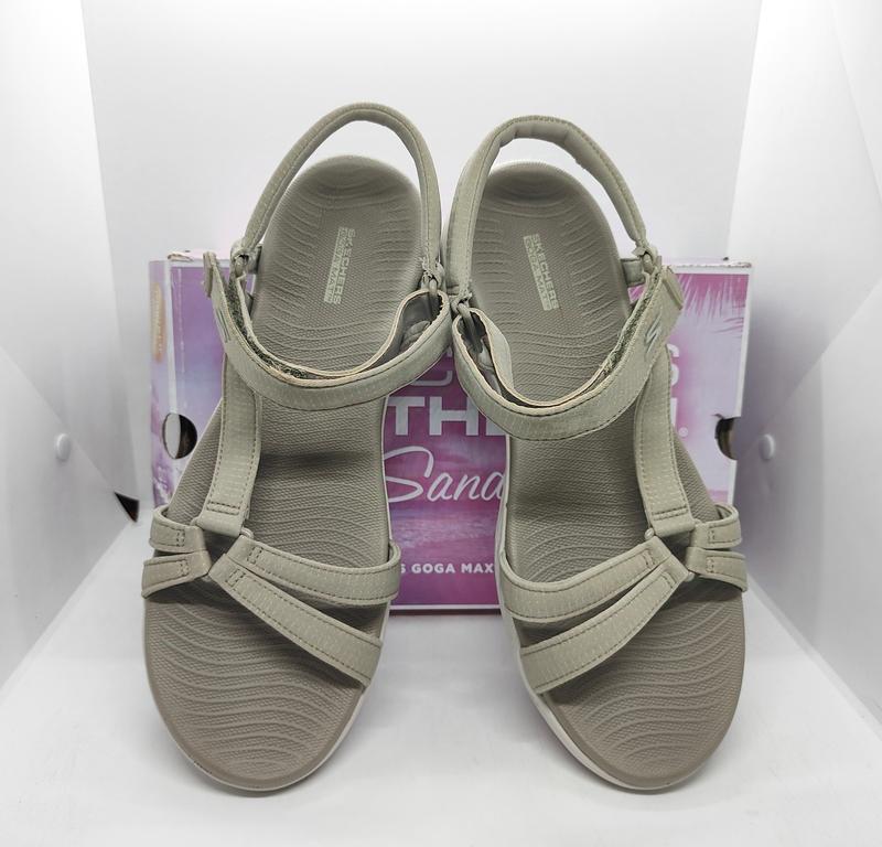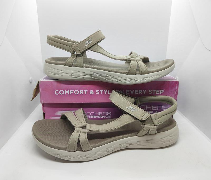 босоножки сандалии Skechers On the GO оригинал текстильные спортивные сандалии со стелькой Goga Mat которая отлично амортизирует стопу и поддерживает вашу ногу. Высокотехнологичная подошва 5-Gen состоит из легкого материала Eva и прочного полиуретана. Износоустойчива и отлично амортизирует стопу при ходьбе. Можно стирать в машинке. US 11 EU 41, по стельке 27,5