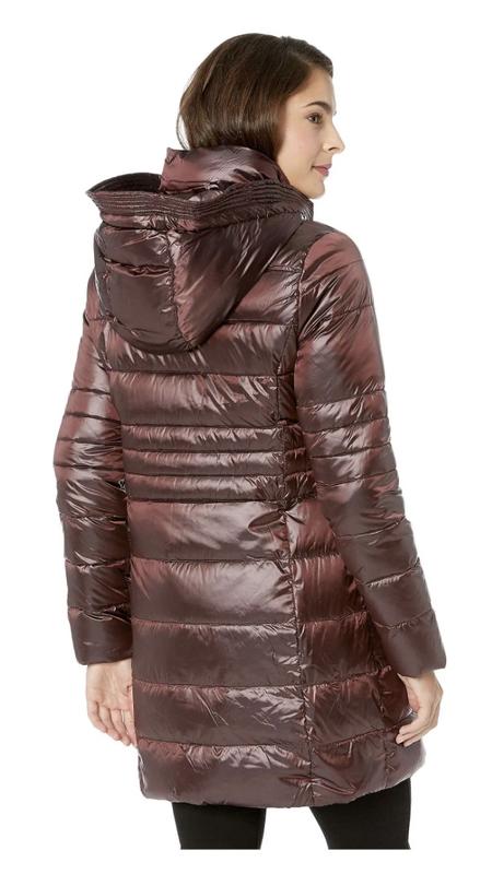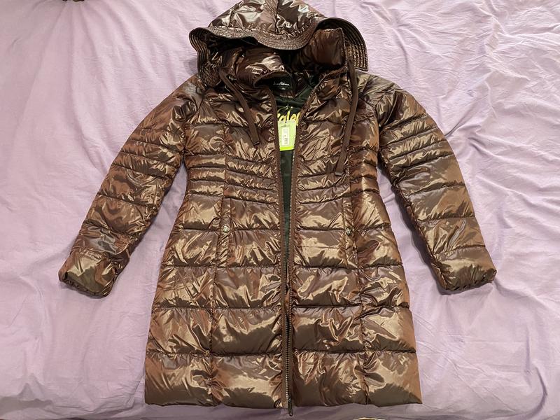 Новый пуховик очень красивого цвета. Бордово-коричневый , переливается. Размер XS-S. Наполнитель 90% пух и 10% перо