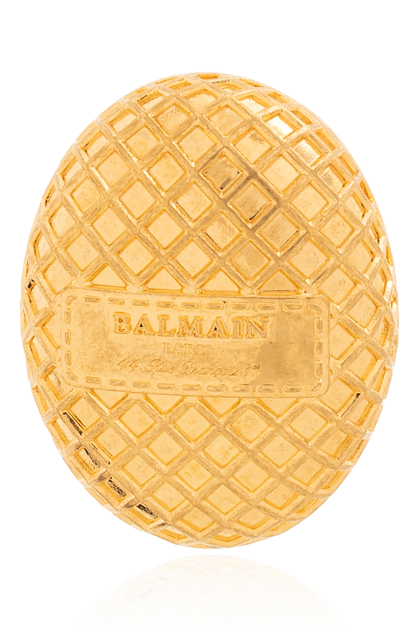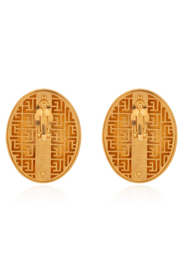 Gold-tone push-back earrings with a clip and logo from Balmain. Made of brass.