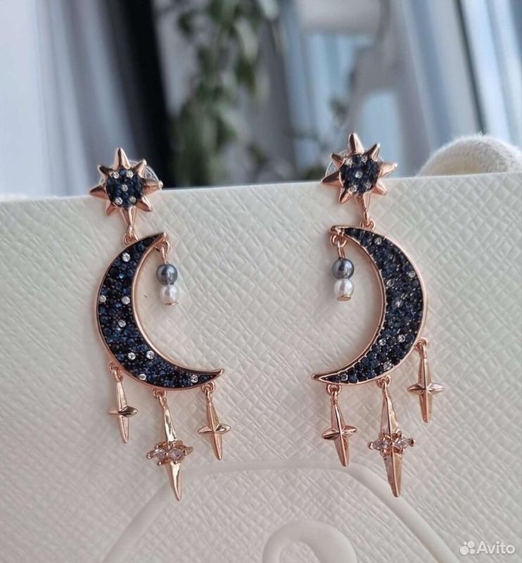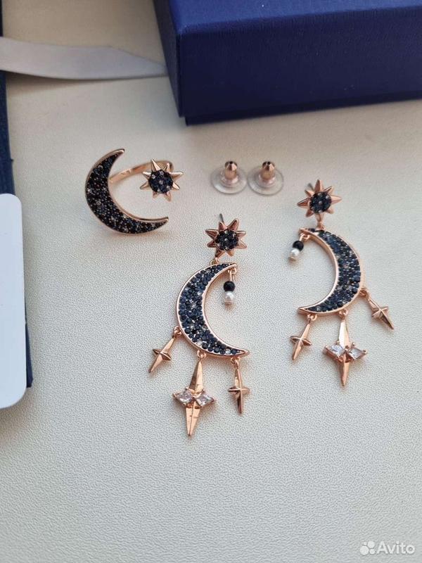 Шикарные серьги и кольца Swarovski. Металл с родиевым покрытием. Блестящие кристаллы и темные цвета. Серьги 2850, кольца 2500 грн.