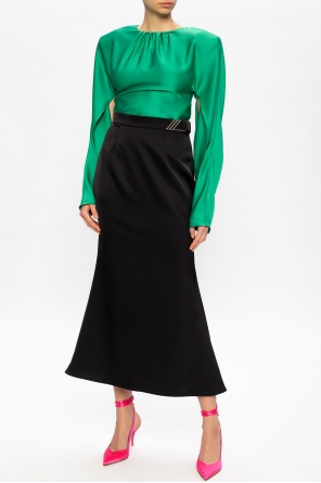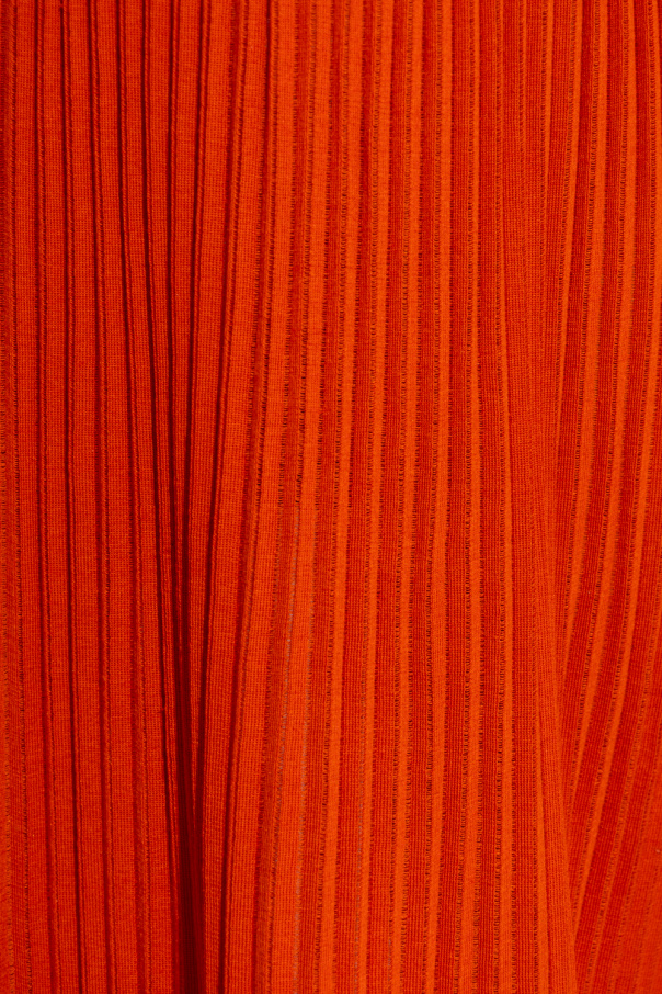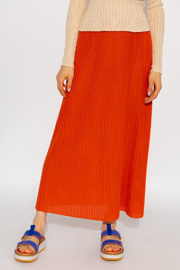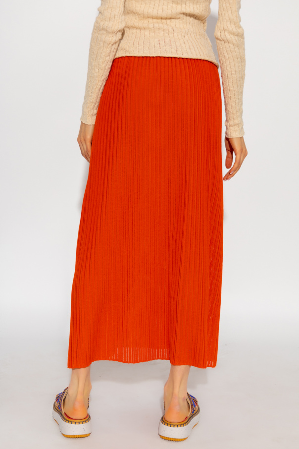 Orange ribbed skirt from Chloé. Made of a silk and linen blend, this flared design is complete with an elastic waistband.