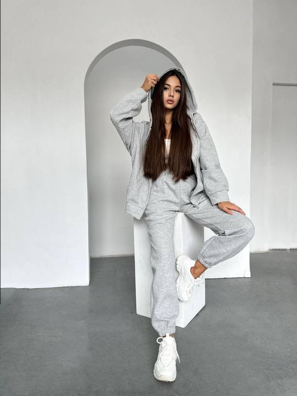 Цена 880 грн Костюм Двойка женский Размер универсальный 42-46 Ткань: трехнитка на флисе Цвета: бежевый, черный, серый меланж, белый Арт 1464-370