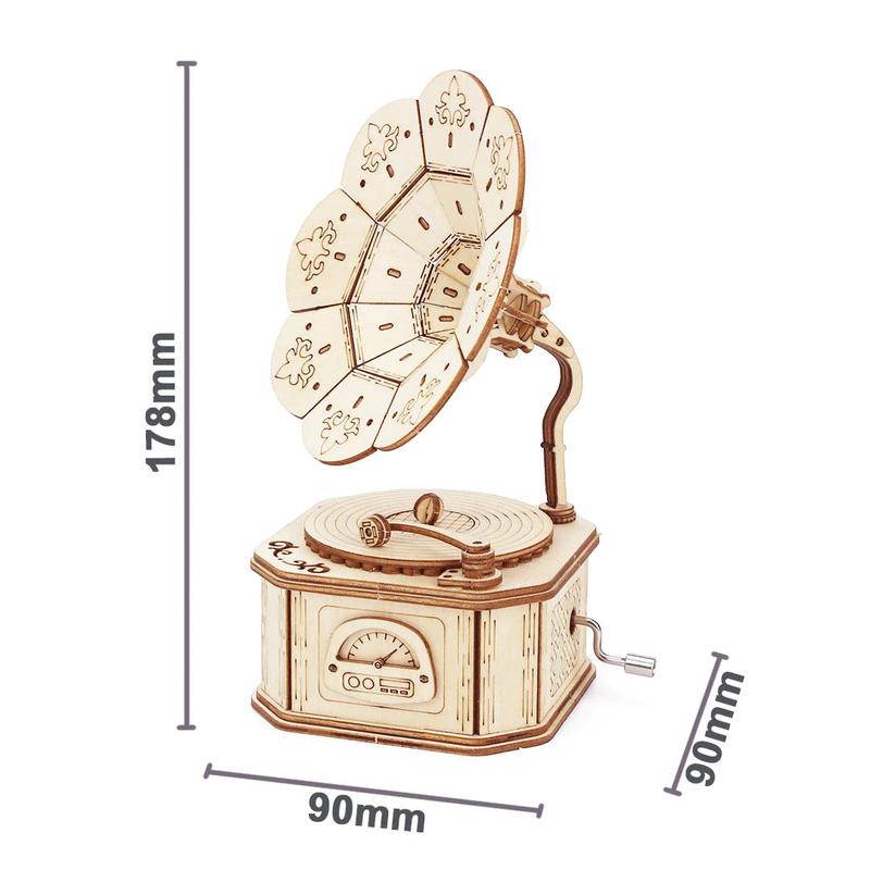 Деревянный конструктор-музыкальная шкатулка Граммофон. Самые счастливые дети -- это те, которые проводят время с пользой, но при этом максимально наслаждаются процессом. Родители их тоже безгранично счастливы, ведь наблюдать за тем, как растет будущий гений -- мечта каждых мамы и папы. С уникальным музыкальным конструктором Громофон детство ребенка будет настоящим, интересным, запоминающимся. Обеспечьте своему чаду интересный досуг, способствующий развитию мелкой моторики, внимательности, логики, памяти и усидчивости! Музыкальная шкатулка в виде граммофона, выполненная в ретро стиле, станет оригинальным подарком для любителей старины. Поставляется в разобраном виде с инструкцией. Характеристики: - Шкатулка механическая заводная; - Музыка: "Beethoven - Fur Elise"; - Материал - дерево; - Размер - 90х90х178 мм. Преимущества : - изготовлен по европейским стандартам из качественных экологически чистых материалов; - имеет ретро дизайн; - развивает многие навыки у детей и взрослых, заставляет мозг работать; - отличный подарок на любой праздник для детей и взрослых; - работает без батареек; - долговечный; - приносит большое удовольствие во время сборки и использования. Артикул: VA-1430293907