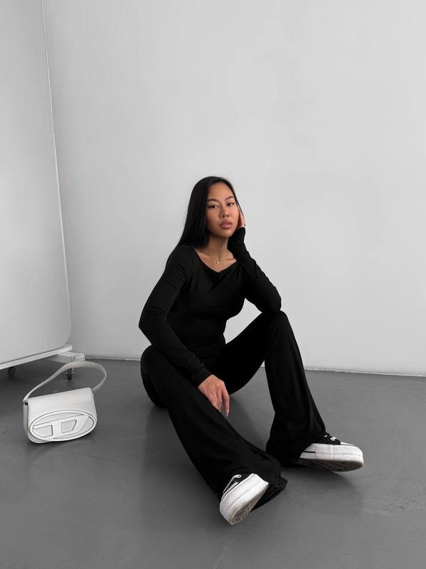 ОБОВ'ЯЗКОВО УТОЧНИТИ НАЯВНІСТЬ УРАБОВАТЬ СЕЗОННОСТЬ ▪️Размер 42-44, 44-46 ▪️Ткань - микродайвинг ▪️Цвет - черный Классные обтягивающие брюки, которые круто подчеркнут твои формы 😍 красиво облегают талию, снизу широкие. Супер - трендова модель 💔 Рост модели на фото:1,64 см ✔️ Стиль.Х 227