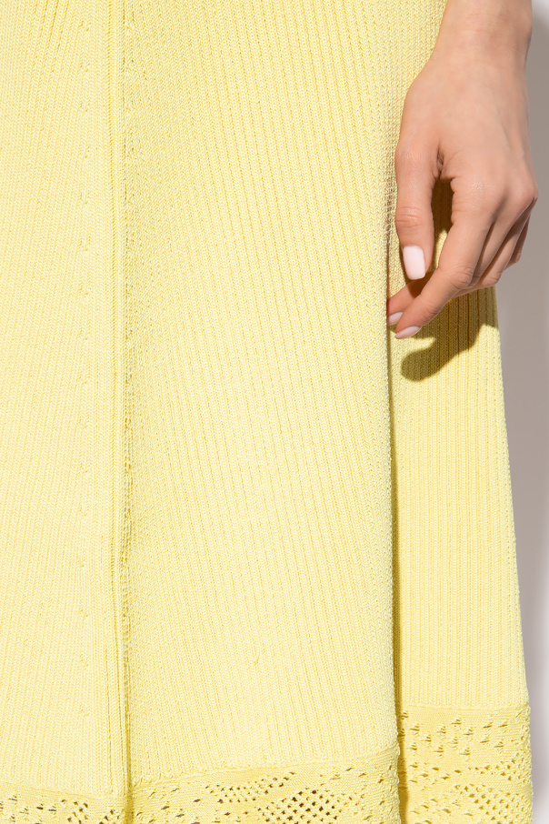 Yellow ribbed skirt from Balenciaga. This pair features an elastic waistband and a cut-out pattern at the back.