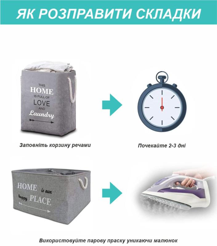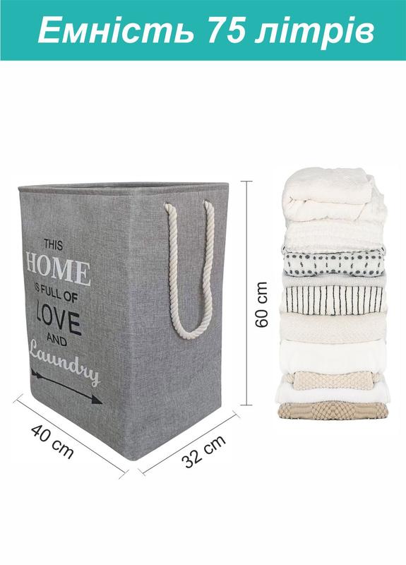 • Материал: хлопок/лен + толстый EVA + подкладка, металлический стержневой каркас, ручки из прочной веревки. • Размер: 60×40×32 см • Сортировка: классифицируйте различные предметы, чтобы сэкономить время и место. • Универсальные и стильные: эта корзина для хранения, оформлена в нейтральных серо-белых цветах, идеально сочетаєтся с любым интерьером, добавляя элегантность вашему дому. • Компактная конструкция: корзину для белья можно легко сложить, чтобы сэкономить место, когда она не используется, идеально подходит для студенческих общежитий, спальни, балконов, ванных комнат, гостиной, коридора, гардероба, кухни и т.д. Совет по распаковке: чтобы устранить складки: плотно заполните корзину вещами на 2-3 дня или используйте портативный отпариватель. • СОВЕТ ПО УХОДУ : Не рекомендуется стирать в стиральной машине, поскольку имеется металлический каркас. Просто протрите влажной губкой или тканью.
