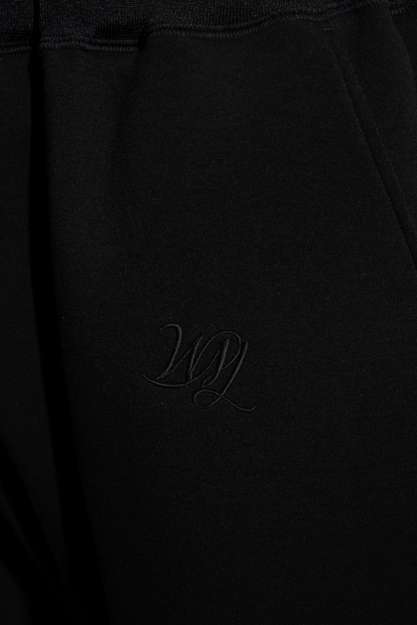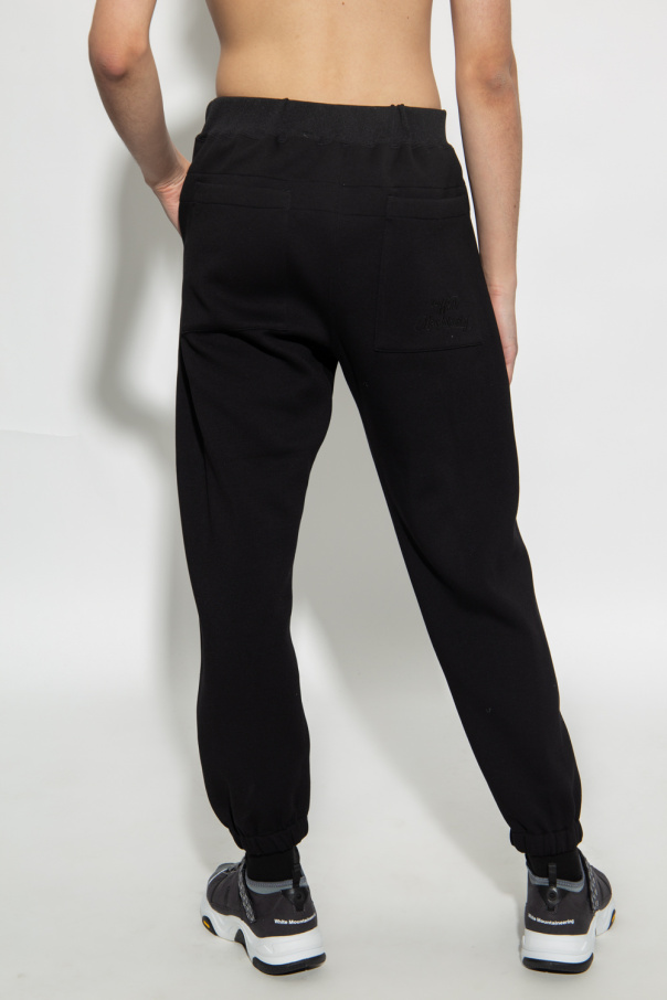 Black sweatpants from White Mountaineering. Embroidered with the brand\'s logo, this pair features a drawstring waist, elasticated cuffs and four slip pockets.