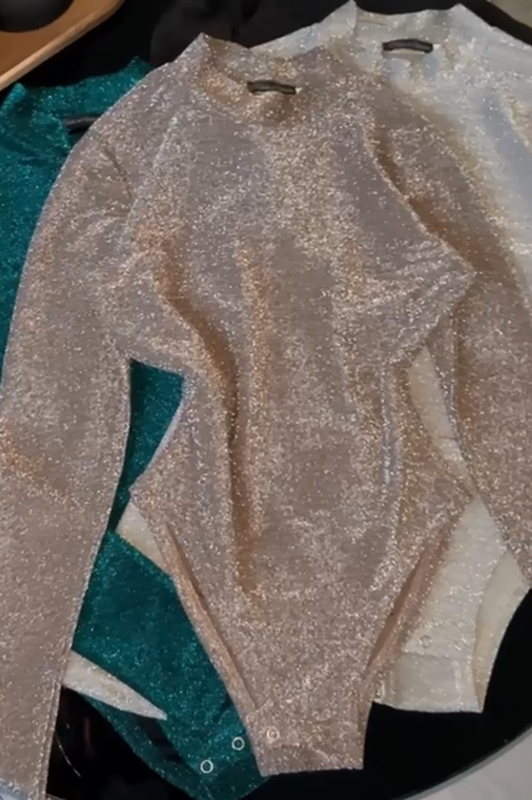 Шикарное Боди женское люрекс!!! В нем вы будете выглядить на миллион!! Есть видео по модельке Ткань - люрекс Размеры - 42-44, 46-48 Цвета: черный, зеленый, серебро и беж