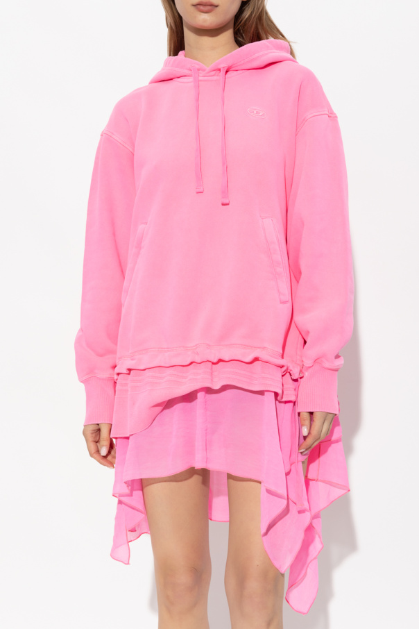 Pink ‘D-ROLE’ dress from Diesel. Made of cotton, this garment features a logo embroidery, drawstring hood, two slip pockets, decorative detail and long sleeves with ribbed cuffs.
