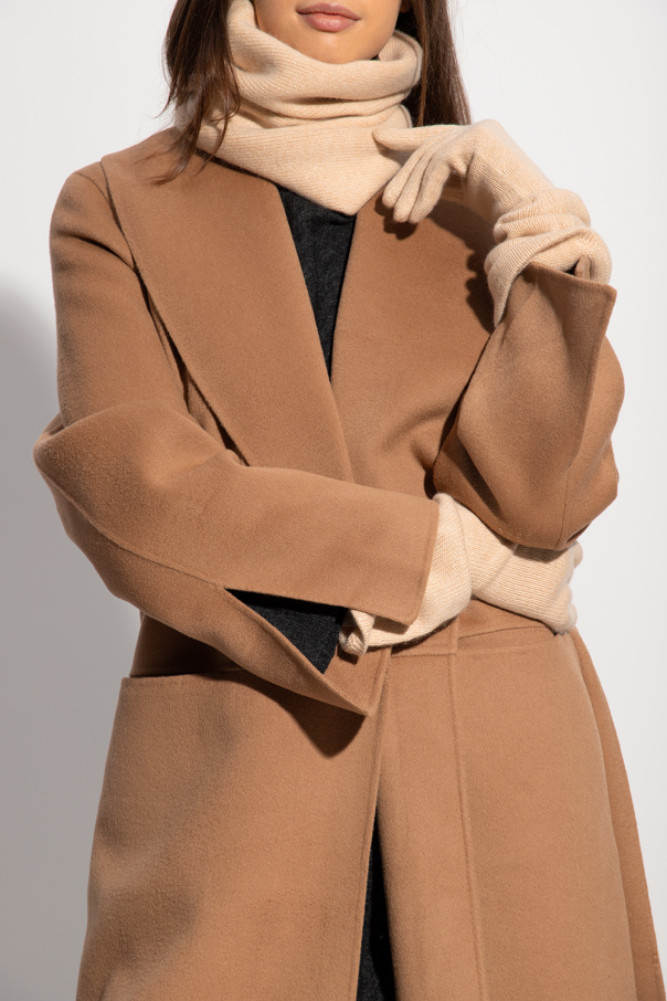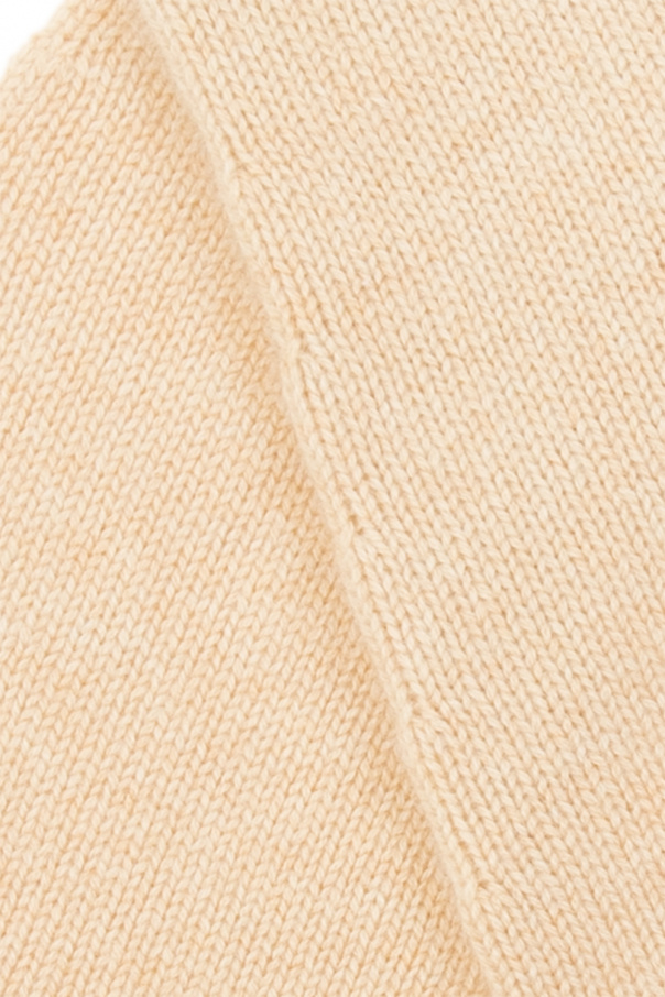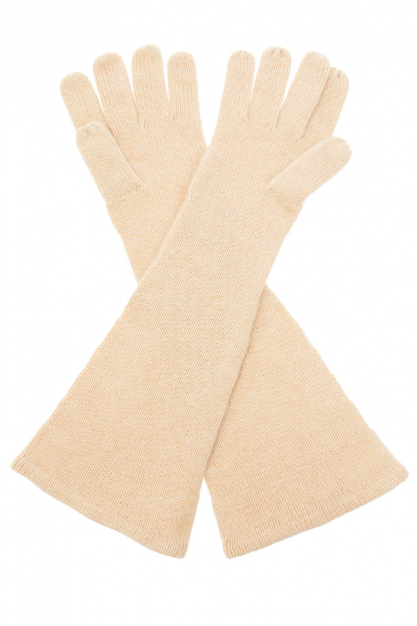 Cream gloves from Toteme. Made of cashmere, this pair features ribbed detailing.