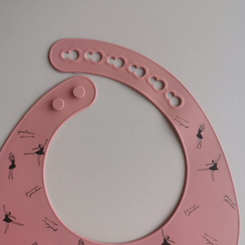 Силиконовый детский слюнявчик, в цвете блаш с балеринами. Они стильные, с легкостью можно подобрать тарелочку в тон нагрудника, качество отличное, плотный силикон, карманчик прекрасно держит форму, легко моется. Застежки регулируются, поэтому слюнявчика хватит надолго. Его удобно брать с собой, потому что он прекрасно и компактно скручивается, легко моется, можно протереть влажными салфетками или помыть подводой или посудомоечной машине. Это лучше всего, что придумали для первого прикорма, потому что становится меньше в разы. Не травмирует нежную детскую кожу вокруг шеи. Изготовлены из 100% пищевого силикона, поэтому безопасны для здоровья малыша.