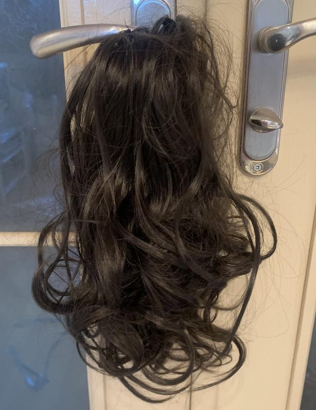 Накладной хвост на крабе, цвет темный каштан, крупный локон. Длина 30 см, можно выпрямить утюжком до 40 см. Хорошее качество. Одет один раз для фото. Не натуральный,но очень реалистичный