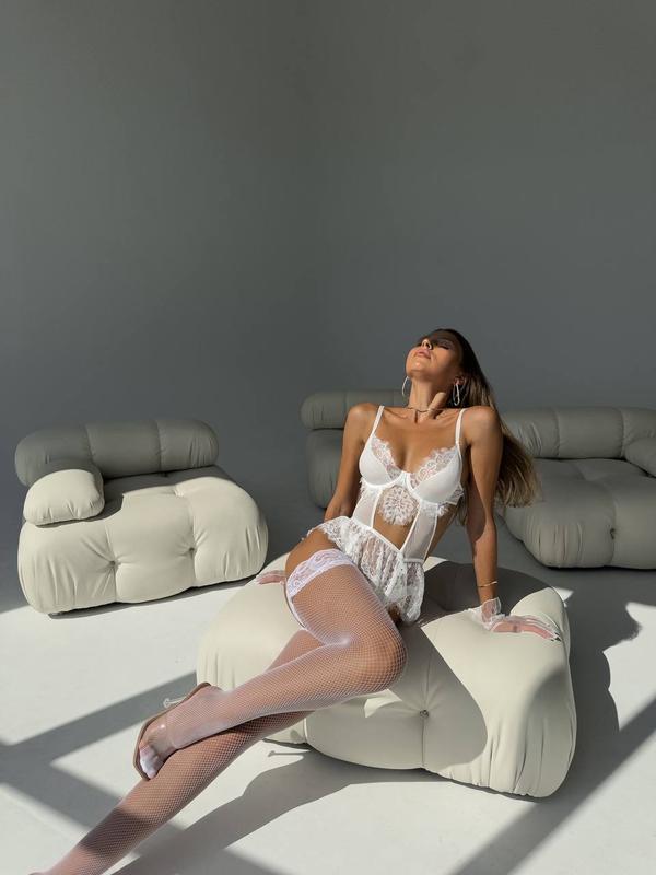 Роскошный комплект белья с чулками🤍 ✔️Комплектация комплекта: удлиненный бюст с подтяжками, трусики и чулки - 890 грн ❗️Перчатки продаюсь отдельно, есть длинные и короткие, если нужно ✔️Бюст на косточках! ✔️Качество материала ТОП🔝 ✔️размеры S, M, L 👇👇👇👇 Размер по сетке: S: грудь 85-89, бедра 86-94 М: грудь 89-92, бедра 94-98 L: грудь 93-97, бедра 99-105