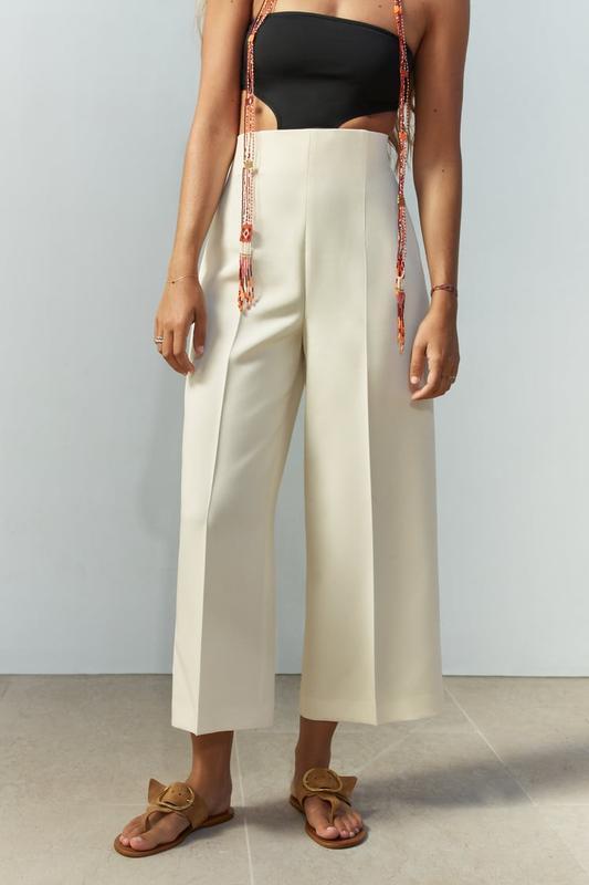 ШТАНИ-КЮЛОТИ ZARA В наличии размер М, новые, оригинал 💫, с бирками! ЕКРЮ 2242/118 Брюки-кюлоты с высокой посадкой и широкими штанинами. Потайная застежка-молния сбоку. Замеры: * длина по внутреннему шву 63 см, по внешнему 95 см * полу ОБ 48 см * полу ОТ 36 см * высота посадки 34 см