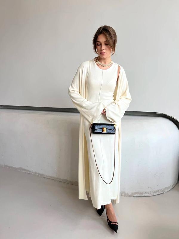 Новинка 😍 Костюм двойка 🕊 Модель 9005 ▫Ткань: дорога турецкая плотная вискоза ▫Размерный ряд:42-46, 48-52 ▫Цвет: черный, молочный, капучино Невероятно нежный и романтичный комплект 🍂 Платье без рукавов, с стильной накидкой на прохладные вечера ☕️