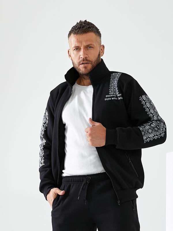 Мужской утепленный трикотажный костюм со стойкой Представляем вашему вниманию мужской утепленный трикотажный костюм со стойкой — отличный выбор для сезона осень-зима, удобный и комфортный костюм из качественной и утепленной ткани. Особенности этого костюма: 1. Качественный Трикотаж: Изготовлен из мягкого и теплого трикотажа тринитка с начесом, который обеспечивает дополнительное ощущение тепла и комфорта за счет сберегания тепла вашего тела. 2. Удобная горловина - стойка: Верх костюма — куртка со стойкой, что дает возможность комфортно носить ее под верхней одеждой 3.Спокойный и классический Дизайн: На груди и рукаве куртки имеются орнаменты, которые не сильно выделяются но добавляют оригинальный элемент к стилю костюма 4. Практичные Карманы: Два кармана с молнией на кофте и два кармана с замком на брюках предоставляют место для хранения мелочей или для согревания рук. 5. Специальные Детали: Низ кофты и рукава украшены резинкой, обеспечивая хорошую посадку и удержание тепла. Брюки прямого кроя без резинки внизу, а в поясе имеется резинка с шнурком для настройки подходящей посадки. Этот утепленный трикотажный костюм — идеальное решение для тех, кто ценит уют, комфорт и стиль. Носите его в повседневных образах или на активном отдыхе, чтобы оставаться в тепле любую погоду. Заказывайте теплый трикотажный костюм-двойку для мужчин по ценам производителя. В наличии размеры от L до 4XL. Теплый трикотажный костюм, прекрасный подарок для любого мужчины.