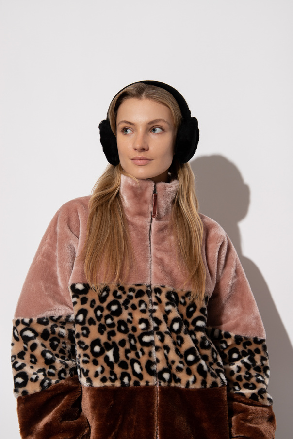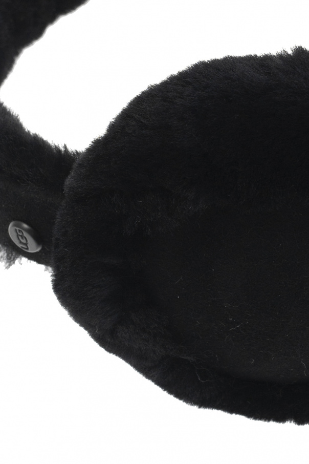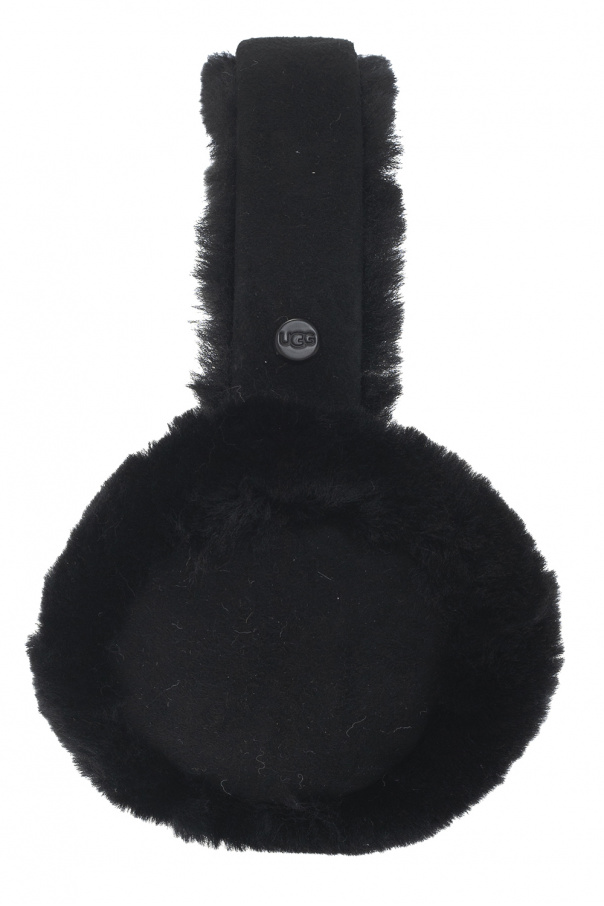 Black wireless earmuffs from UGG. Crafted from suede and sheep fur, this item comes with a USB cable and showcases a logo appliqué.