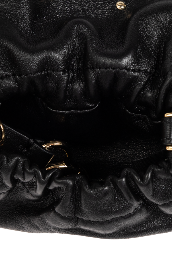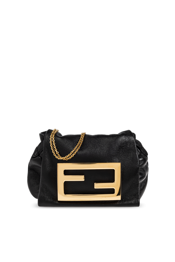 Introducing the exquisite Nano Mamma Baguette by Fendi, an embodiment of elegance and contemporary design. This black mini bag is a masterpiece from the illustrious Italian fashion house, renowned for its unparalleled craftsmanship and timeless style. The bag boasts a rounded, soft silhouette with artful ruching, crafted meticulously from the finest lambskin leather. Its supple texture and modern contours make it a versatile accessory for any fashion connoisseur. A distinctive feature is the bold gold rectangular logo adorning the front, serving as the focal point of its luxurious aesthetic. Complemented by a gold chain strap, this bag exudes opulence and allows for elegant shoulder wear. The interior is thoughtfully designed, featuring a plush lining that ensures effortless organization and protection of essentials. The universal black hue enhances its adaptability to myriad ensembles, making it an indispensable addition to any wardrobe. Why Choose This Product? Timeless design with a modern twist. Crafted from premium lambskin leather. Features an iconic gold logo and chain strap. Thoughtfully designed interior for easy organization. Versatile black color for infinite styling possibilities.