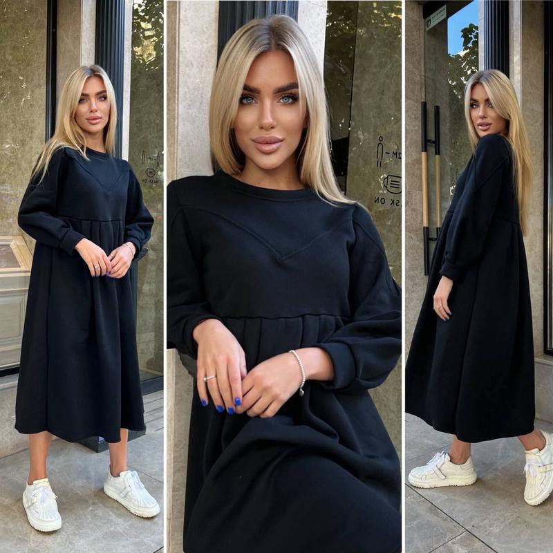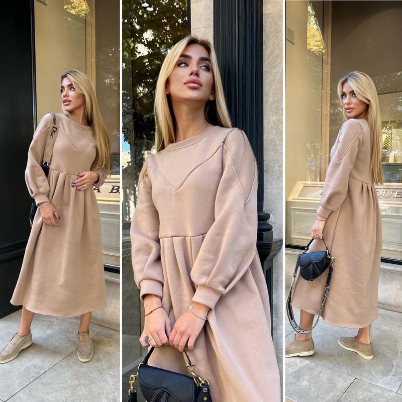 Новинка Хит продажей! Мод 316 Платье Теплое Комфортное в Стили OVERSIZE Размеры 42-46,48-52 размерный ряд 1/2 Ткань Теплая трехнитка на Флисе! Хорошее качество! Цвета - Меланж,Мокко,Черный,Беж Розе