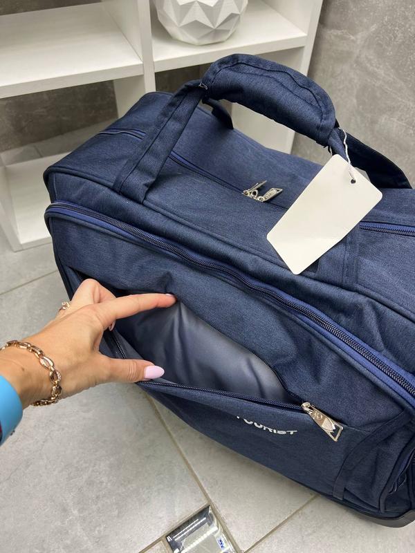 Сумка на колесах, представленная в 2х размерах и двух цветах. Размер большей : Ширина по дну 56 см Ширина зверху 45 см Высота 35 см Дно 28 см Цена 1400 грн Размер меньшей: Ширина по дну 50 см Ширина зверху 40 см Высота 32 см Дно 25 см Цена 1300 грн Одно отделение на молнии. Спереди 2 отделения на молнии.