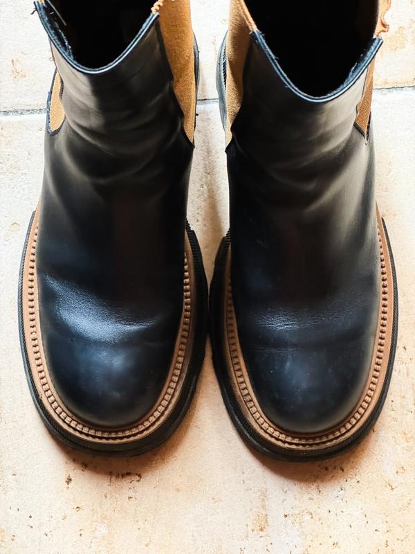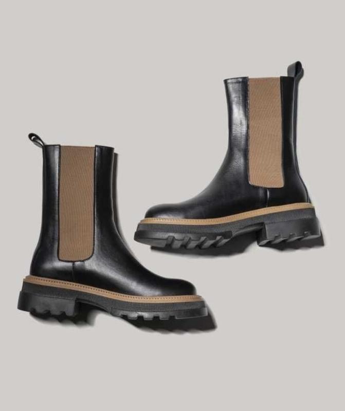 Черевики-челсі від українського бренду Coosh з коричневими еластичними бічними вставками. Мають петельку ззаду та товсту тракторну підошву. Матеріал: натуральна шкіра. Розмір 40-41 Довжина устілки 25.5-26 см