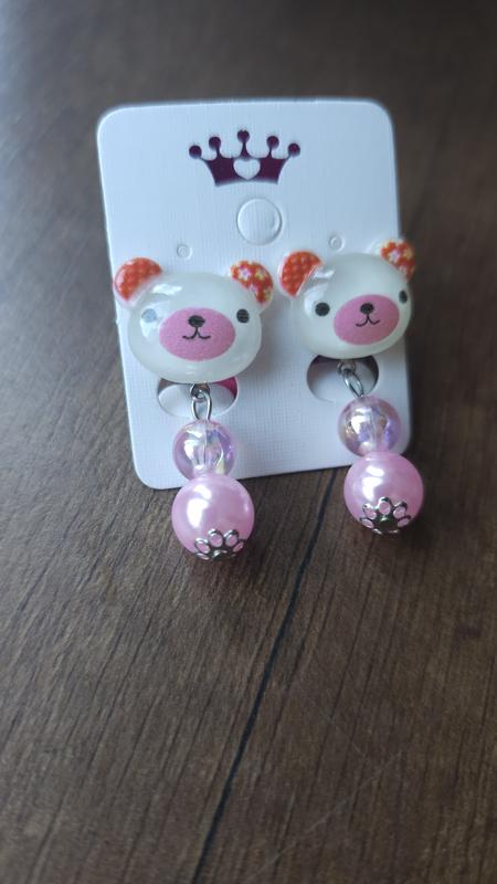Детские клипсы для ушей очень красивые для девушек украшения бижутерия обманки на ушки Очень красивые клипсы белые мишки Подходят и для взрослых девушек)