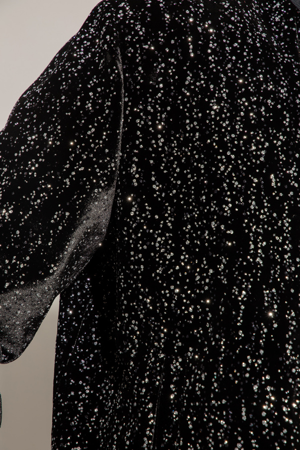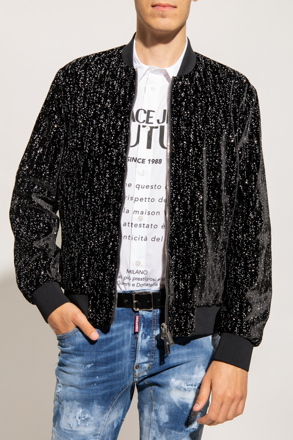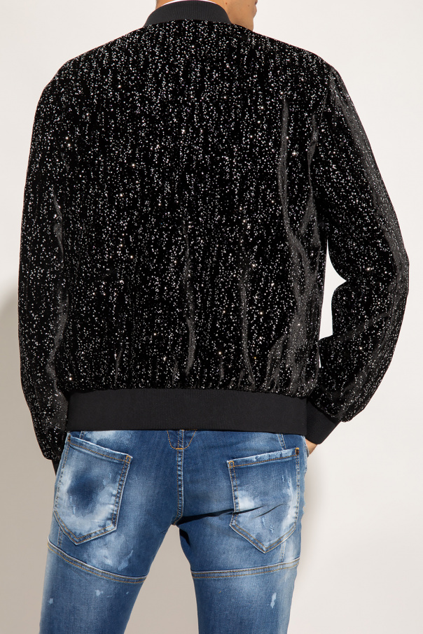 Black sweatshirt from Dsquared2. Fastened with a two-way zip, this garment features a velvet finish, glitter appliqués in silver-tone, two slip pockets and ribbed trims at the collar, hem and cuffs.