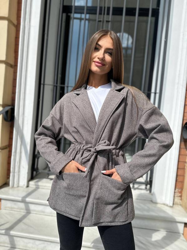 Жакет без підкладки модель 8364gar Колір: сірий , мокко Розмір: 42-46; 48-52 Ткань : вовна Сезон : осінь,зима, весна