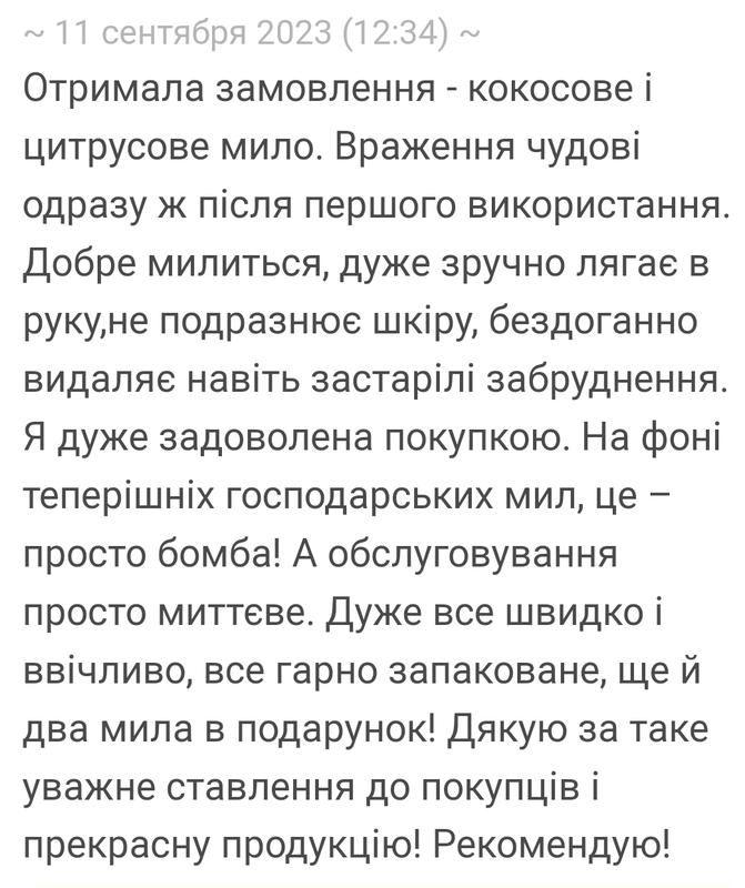 Кокосове універсальне мило по оптовій вартості від 38 грн/шт Вага 160 г упаковка 50 та 100 шт відгуки дивіться в галереї фото або на сай ті mylzava com Це рослинне мило виготовлене на кокосовій олії за спеціальною технологією (без додавання других олій), яка дозволяє зберегти високі миючі властивості, при цьому бути лагідним до рук. Цей рослинний миючий засіб, підійде для потреб: 🧺 прання дитячих речей•білизни навіть від народження 🍼миття дитячого посуду • фруктів 🧼 миття рук при сильному забрудненні; 🧤 миття поверхонь Користувачі обирають цей універсальний засіб, тому – що він, на їх погляд, працює краще будь-якого господарського мила навіть в холодній, жорсткій воді. Не має специфічного запаху побутової хімії. Склад: · омилена кокосова олія – основний компонент. Саме він дає піну та забезпечує мильні батончики високими миючими властивостями; · вода очищена; · цитрат натрію (сіль лимонної кислоти) - компонент, що пом’якшує жорстку воду при використанні в ній засобу; · хлорид натрію (у вигляді морської солі) – натуральний консервант з ефектом пом’якшення води коко-бетаїн - кокосова поверхнево - активна речовина з кокосової олії. В складі, немає тваринних жирів, пальмової, ріцинової та інших олій, фарбників, SLS, SLES, фосфатів, синтетичних ароматизаторів. Вага мила 160 г Термін придатності 36 міс Сайт виробника mylzava com