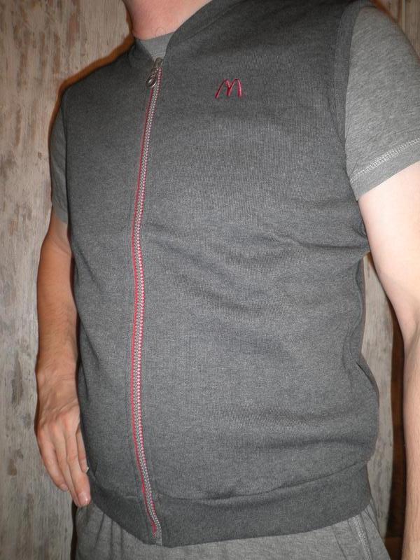 Удобная жилетка из натурального хлопка, очень качественная, молния бренда Riri такую фурнитура устанавливают только на брендовые вещи, продаю поскольку не подходит размер. Жилетка произведена для работников сети макдональдс McDonalds Superior Workclothes. Новая не ношена размер указан М На фото видно что мала, фото для представления вида Вот мои замеры: Плечи 42см ПОГ 52см ПОТ 50см ширина снизу 45см ( резинка тянется) длина 62см